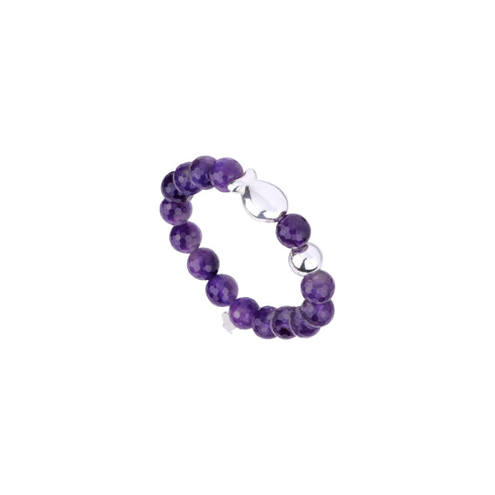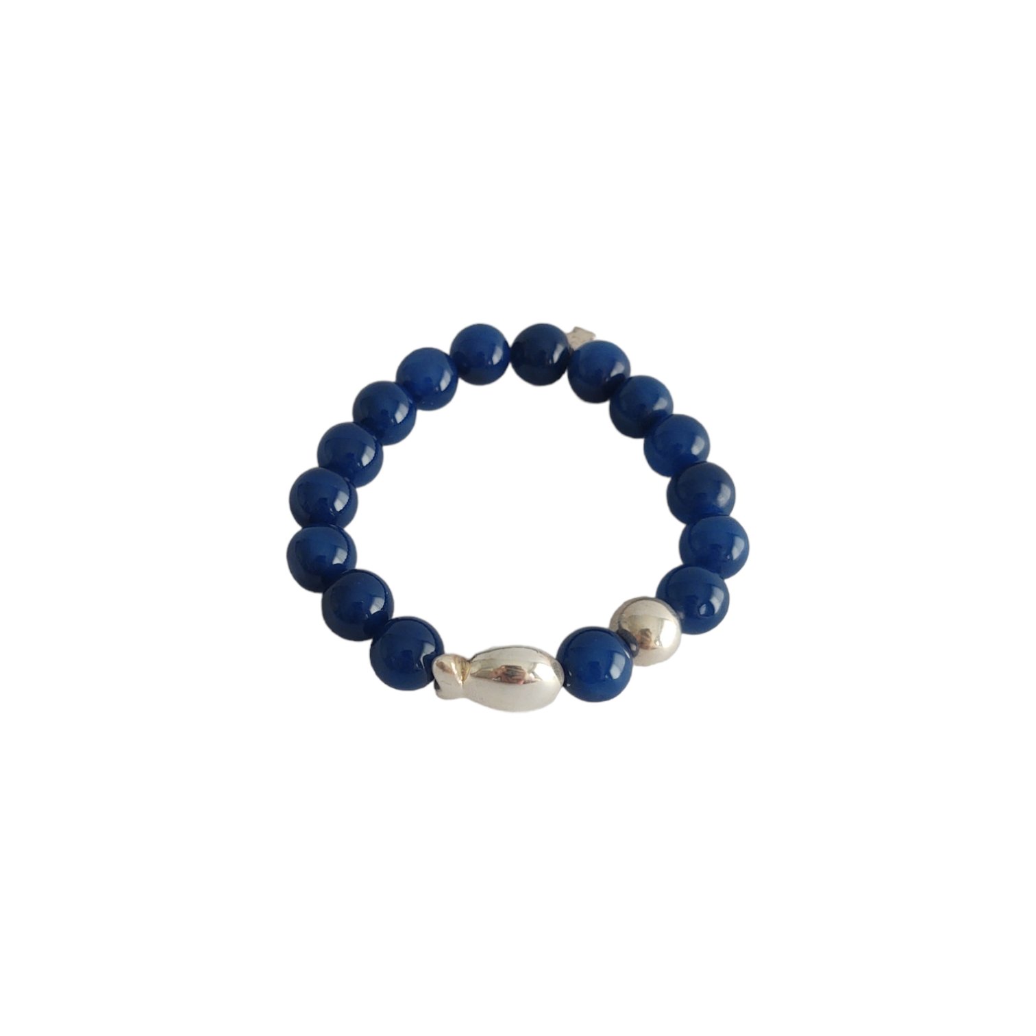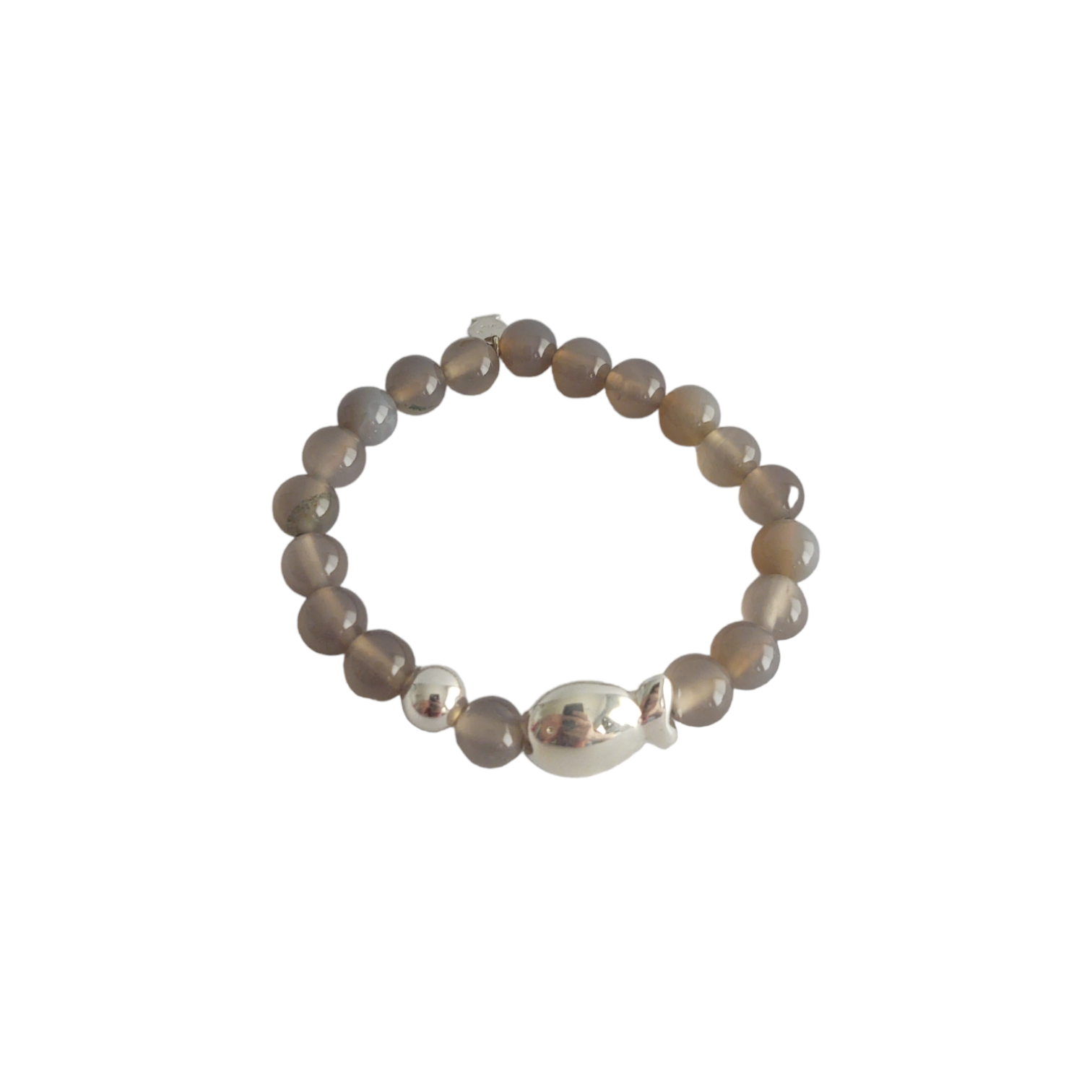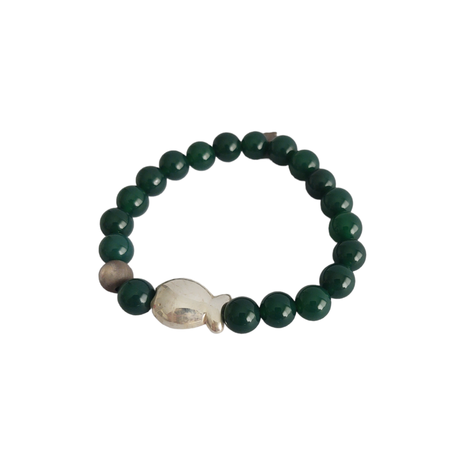 Semi precious stone elastic bracelet made with colored beads and solid silver details (one round bead and one fish shaped bead). 2.5 g silver Diameter bracelet: 5.5 cm (stretchable) Bead diameter: 6 mm or 8 mm or 10 mm or 12 mm or 14 mm